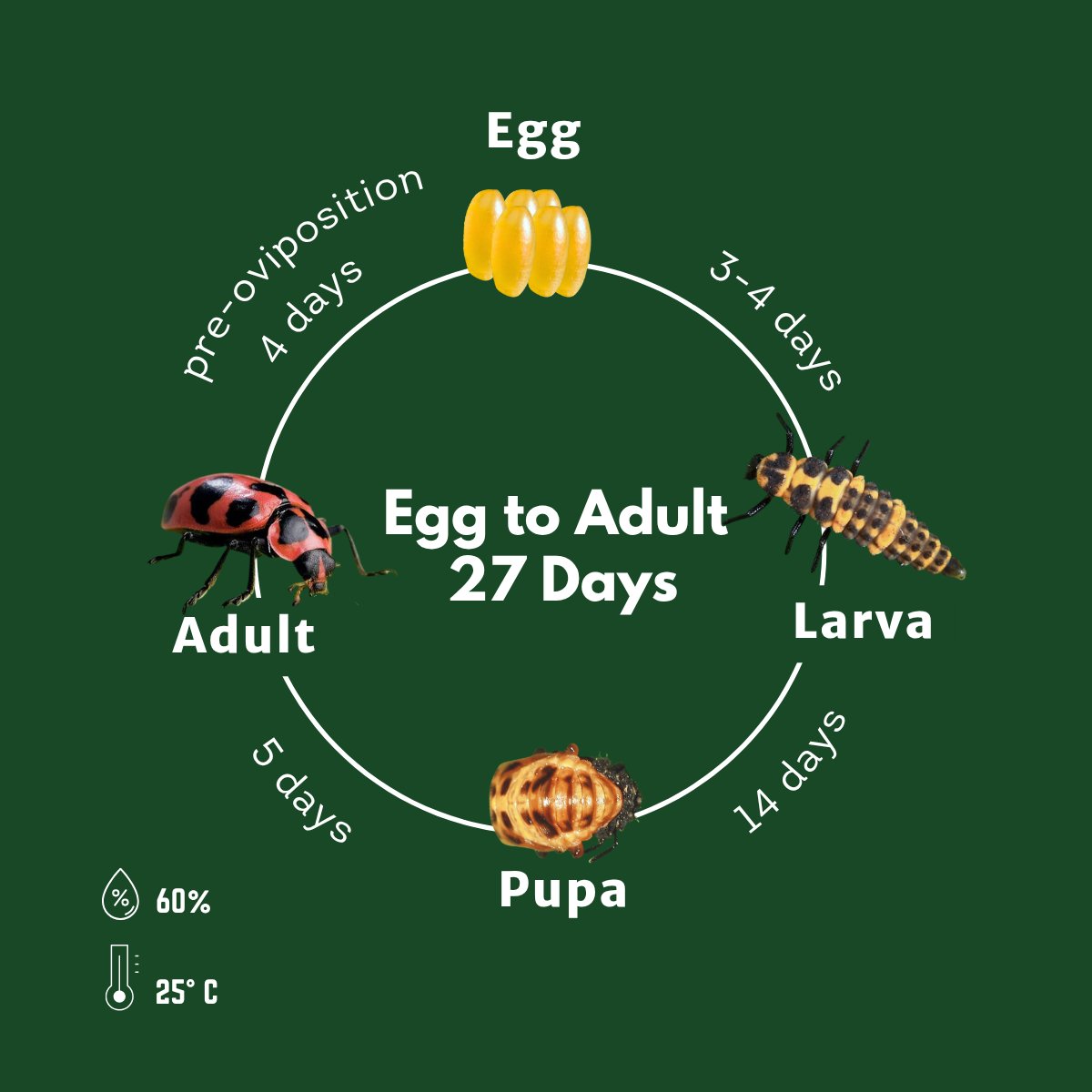 Coleomegilla maculata, commonly known as the pink spotted lady beetle, is an effective biocontrol agent for managing aphids, mites, and insect eggs. Both larvae and adults actively feed on pests, helping to control infestations.